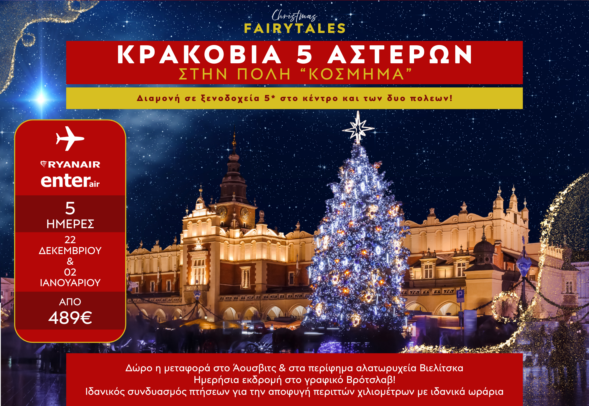 Tribe Hotel (Mercure Collection) 4* | 489€ / 539€ | 339€ / 379€ | Θεσ/νίκη – Κρακοβία 08:10-09:00 Κρακοβία – Θεσ/νίκη 10:10-13:10 |
